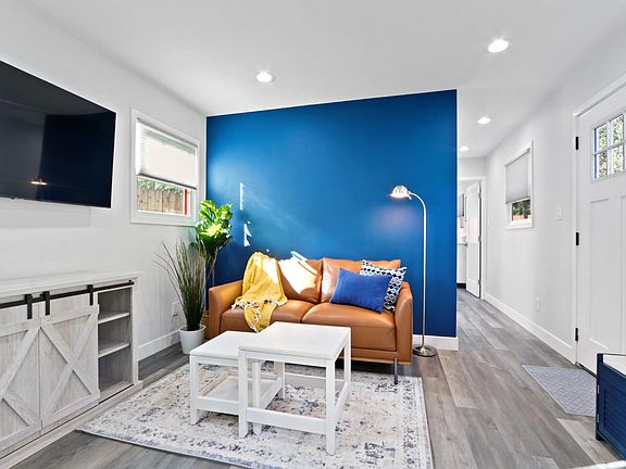 Welcome to our FULLY FURNISHED recently built 1 bedroom, 1 full bath house in a quiet tree-filled backyard. This spacious back house features a fully equipped kitchen, a deep soaking tub with shower, a secluded back patio with seating, and a dedicated workspace perfect for digital nomads or visiting professionals.