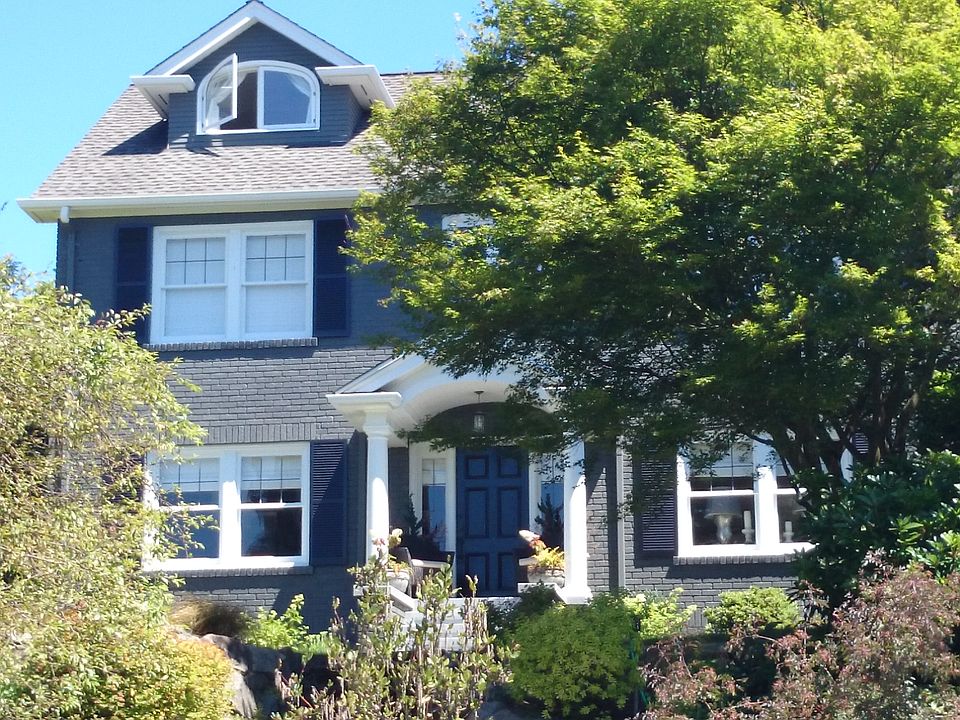 This 1928 Colonial offers old world charm highlighted by modern conveniences of today! Enjoy captivating westerly views of the skyline, mountains, the Space Needle and daily sunsets. Gracious room sizes, an easy circular floor plan, gleaming hardwoods on every floor, a sweet kitchen with irresistible eating nook, a reclaimed third level containing two bedrooms with beveled glass doors and a whimsical tiled bath, 2 car garage and additional storage facility. Outstanding location and views!