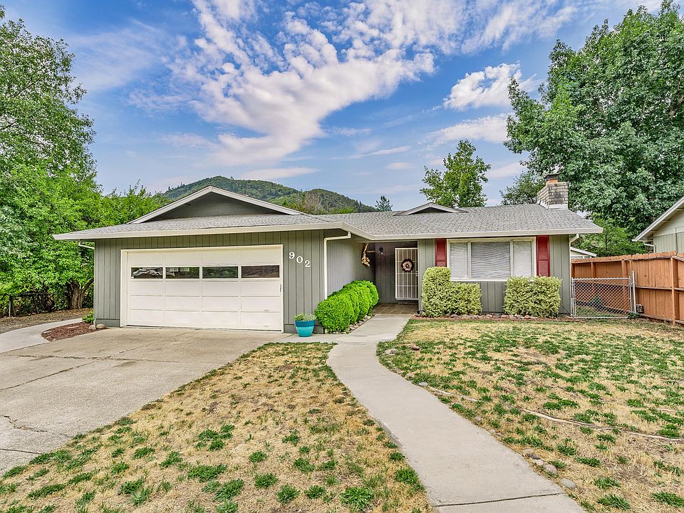 Wonderful end of street privacy and single level living in the quaint town of Rogue River, conveniently located between Medford and Grants Pass! You are right in town but get that country feeling! Nice views from the shady back yard too! Home features very nice brick fireplace in large living room, and open kitchen and dining area with slider and large windows overlooking the back and side yard! Attached 2 car finished garage with laundry hookups and large fenced in yard! Great starter or sizing down home.