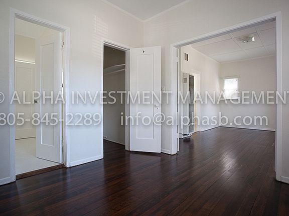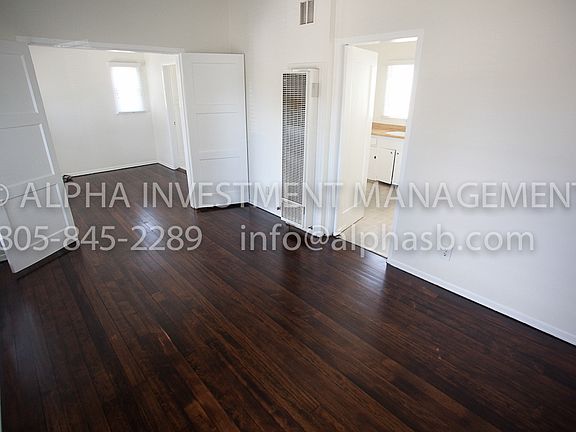Located in downtown Santa Barbara. This is the top level of a 2 unit Duplex. There is a sunny front patio with mountain views. The kitchen is spacious with high ceilings a breakfast nook and new stove. The new renovations include hardwood floors, window coverings, paint and a renovated bathroom, with new walk-in shower. 12 month lease minimum. Long term tenant preferred. Lease terms are based on qualified application. No pets, No smoking, No Co-signers Please.Tenant to pay Electric & Gas. Owner pays for water & trash. Street parking only. Shared coin-op laundry room onsite.