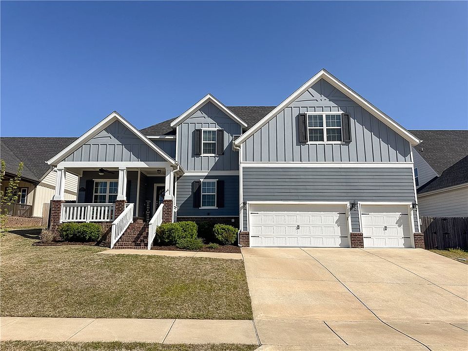 Welcome home to coveted Hyde Park where you'll find an abundance of amenities including a neighborhood park, walking trails, community garden, and a community pool. Centrally located in the Northwest Arkansas Metro Area, you're just minutes from shopping, trails, Top Golf, Walmart AMP, and Mt Hebron Park! This beautifully maintained Craftsman style home features a 3-car garage with 8-person storm shelter, covered front and back porches, separate formal dining room, large bedrooms, and a HUGE 18 x 17 bonus room! Raised garden beds in the spacious back yard are ready for your spring planting! Kitchen refrigerator and backyard playset convey.