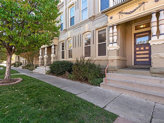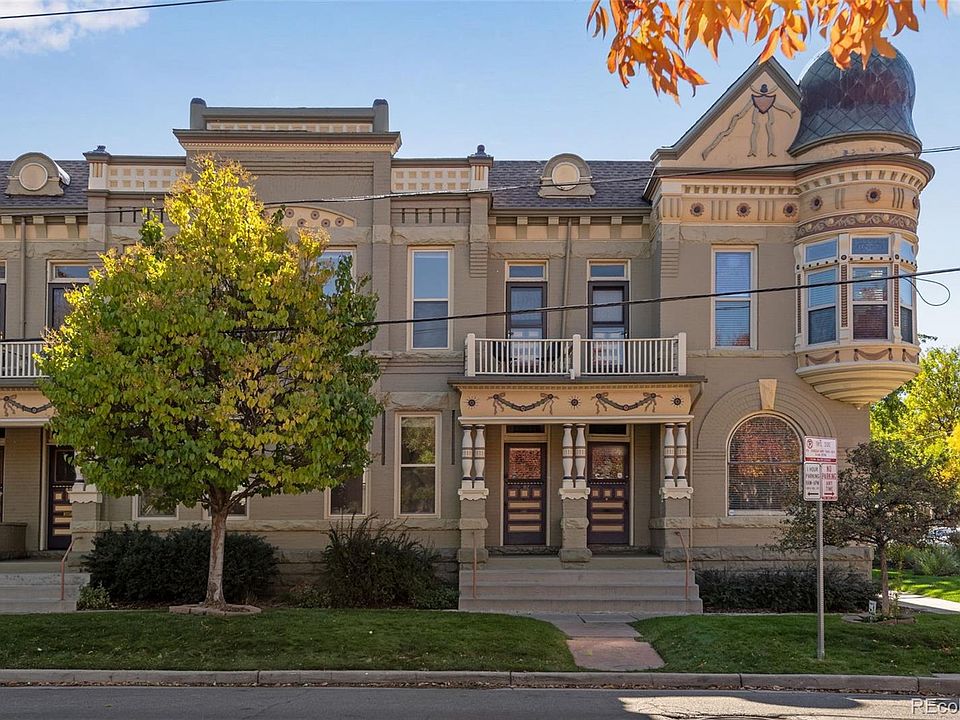 Remarkable townhome in one of Denver's most beautiful landmark buildings. This two-story townhome in the New Terrace building (circa 1889) has been tastefully updated while retaining many of its beautiful original features, including wood floors, original trim and molding, entry hall with classic banister, and architectural detailing. Combine these features with an updated kitchen, open floor plan, large windows, high ceilings, gorgeous marble bath with large walk-in shower and a lovely patio... and you have a truly unique property. The first floor is warm and inviting; a large picture window overlooking well cared for landscaping floods the home with natural light. New quartz kitchen countertops, exposed brick, fresh paint and updated systems make this a worry-free and comfortable home. The first floor powder room and lower level laundry / utility room are functional and nicely finished. Upstairs, you will find two large bedrooms. One has a large, walk-in closet and the other features French doors. The second floor configuration is flexible as either room could function well for a primary bedroom, office, nursery or guest bedroom. Topping off the townhome is an exceptionally beautiful remodeled bath with a large walk-in floor-to-ceiling shower and a separate claw foot tub. Great natural light will brighten up anyone's day after bathing in this amazing space. The secluded private yard features planting beds and a nice patio and is wonderful for enjoying summer evenings and entertaining guests. Just a few steps out the back gate is your deeded parking space in a lot adjacent to the building and a private open space with lovely trees, benches and paths. The unbeatable location in the San Rafael Historic District is walkable and quiet. Tree-lined streets of lovely 1880's homes immediately adjacent to shopping, grocery stores, restaurants and cafes. Come see this piece of Denver history and make it part of your future!