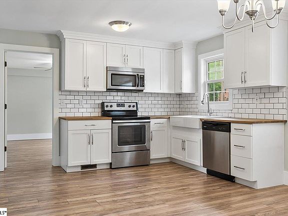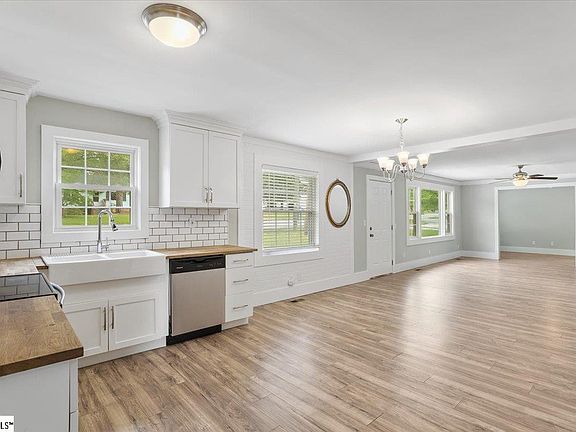 Fantastic Location, Beautifully Remodeled, and Completely Move-In-Ready!! This Ranch style 3 bed 2 bath plus bonus/office home in the very popular Taylors area boast an open floor plan all on a single level, two private decks, and a fenced level yard with mature trees; perfect for outdoor entertainment. The location is ideal for enjoying nearly all that Greenville has to offer with a short 10 minute drive into Downtown Greenville and easy access to all the restaurants and entertainment along Wade Hampton Blvd. The home offers a fantastic layout with a large living room open to the updated kitchen with shaker cabinets, butchers block counters, farmhouse sink, stainless steel appliances, and subway tile backsplash; a bonus room/office off of the living room with access to one of the two back decks. The Master suite is very large and offers a full bath with double vanity and tile floors; the two guest bedrooms both have double closets and their own full bath with tile floors; the walk-in laundry and pantry has built in shelving and cabinets along with access to the larger deck, perfect for grilling out or a morning cup of coffee. The home includes ALL Appliances including washer, dryer, and refrigerator. It has been freshly painted and ready for new owners to simply move in and enjoy! The HVAC was fully replaced in 2019 with new ductwork and upgraded vent/return placement for maximum efficiency and effectiveness. Fully remodeled a few years ago, all of the major systems; electrical, plumbing, roof, bathrooms, flooring, fixtures, etc have been upgraded. There are many additional improvements that are too many to list. Some of the highlights are: lifetime guaranteed Leafguard gutters, drainage improvements, crawlspace vapor barrier and fans (also a lot of storage space), and landscaping. Zoned for Award Winning schools: Wade Hampton High, League Academy, and Lake Forest Elementary, this home is a gem and will not last long! Schedule your appointment today!