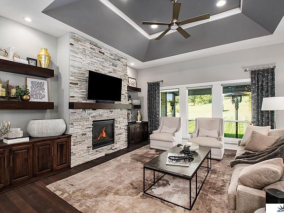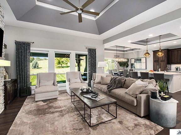 Contract Pending This fantastic Ranch home located in Elkhorn is a must see! The kitchen is an entertainers dream with a huge walk in pantry, an eat in kitchen, and massive island that flows into the open living room which includes a beautiful stone fireplace with built-ins and custom shelving. Professional designer touches are all over this home including custom light fixtures and window coverings throughout, a "brick" accent wall in the basement, and newly updated wet bar, just to name a few. Don't forget the custom retractable screens on the back patio. The owner has spared no expense. The 4th car tandem garage has recently been converted into over 450 sq. ft of Flex Space perfect for a home gym, workshop, or a simulator room. But don't worry the remaining 3 car garage is spacious with plenty of room for storage. All of this, close to the Dodge Expressway, Elkhorn Public Schools, and Lawrence Youngman Lake. And the home backs to Elkhorn Ridge Golf Course...so no back yard neighbor