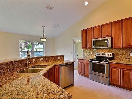 NEW CONSTRUCTION! Oversized lot. Masterfully designed 4 bed 3 bath home w/large open kitch & family rm, formal dining & living rms. Triple pocket sliders lead to a covered lanai. Home features upgraded ceramic tile flooring thru most of the home, granite counter tops, 42" white cabinets, irrigation syst. Full builders warranty. Photos of similar home. Colors and options may be different.