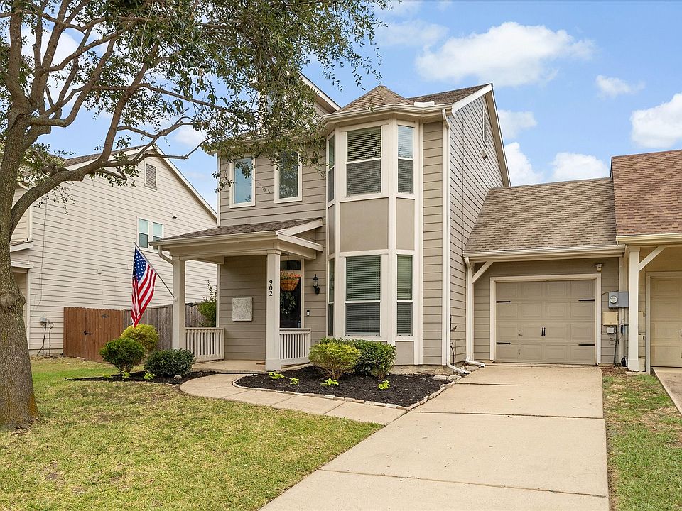Absolutely adorable townhome in A rated Wylie ISD!!! Fresh landscaping greets you before your cute and cozy front porch welcomes you to this open concept, bright and light living space. Bay windows let the sunshine gleam throughout the first floor. With an island (complete with storage), stainless steel appliances (including a refrigerator), and updated, coordinating light fixtures this kitchen is an entertainer's dream! Whether guests are gathered in the dining area, watching a game in the board and batten clad living area or relaxing on the deck in the large, fenced in backyard there's plenty of space to enjoy. Smell the fresh new carpet scent as you walk upstairs to retreat to the bedroom areas. Both upstairs bedrooms boast of ensuite full bathrooms so choosing which large bedroom as the primary made be tricky for you! The laundry space is conveniently located in between the bedrooms complete with an already installed Samsung washer and dryer. Whether the mosaic style tile, upgraded faucets, chic window coverings, or custom mirrors catch your eye, you are sure to fall in love with all the details in this charming abode! If the pictures are not convincing enough, schools are within walking distance, City of Wylie trails, a skateboard park, the Wylie Public Library and Recreation Center, City Hall and Collin County Community College are all within walking (or a speedy car ride) away. Hurry! I know once you get a peek at the pictures you will be saying, AHMO go check this gem out!.