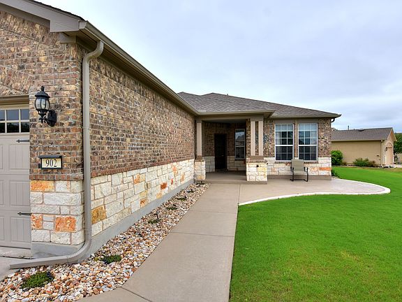 Pretty courtyard patio in front of this Surrey Crest model. Crown molding in great room & study and tile flooring throughout entire house. Eat-in island kitchen with granite counters, solar tube. Trey ceiling, dual vanity & walk-in tiled shower in master suite. Sliding barn door from kitchen to laundry which has extra cabinets & shelving. Storage racks in garage. Large corner cul-de-sac yard with extended covered patio - and fenced to boot.Home has been pre-assessed and all findings have been corrected.