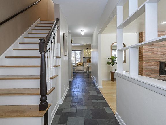 Large picture windowsSlate tile entrywayNatural fireplaceHardwood floorsScreened-in back patio areaConstant wildlifeMature trees