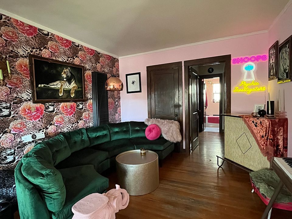 Flexible on duration, but a stay of 3-6 months is preferred. This is a beautiful one bed, furnished house that fits my entire king bed and bedroom set. (Sorry, unfurnished is not an option.) You'll have a walk-in closet, massive bathroom cabinet, built-in pantry, an empty dresser, and three deep built-in drawers for storage. There's a tiny laundry room and separate entrance through the kitchen. All the lights are on dimmers and there's a hidden ceiling fan in the bedroom chandelier. I put so much work into this place and love it with all my heart. The neighbors look out for each other here and there's a brand new three-camera security system. Parking is behind the house and the entire property is fenced in. If you have a dog, please bring them when you come look at the apt. Cats are welcome too! There is an additional pet deposit that will be refunded, but no pet rent. You're up the hill from Erewhon and just a ten minute walk to the best Spin classes of your life. Rent includes wifi and the security system, which you'll have access to via a panel in home on an app on your phone. Please reply with details about yourself and your pets, if you have any. There is a $40 background check if you'd like to apply. If you're seeing this on Zillow, feel free to submit an app through their system.