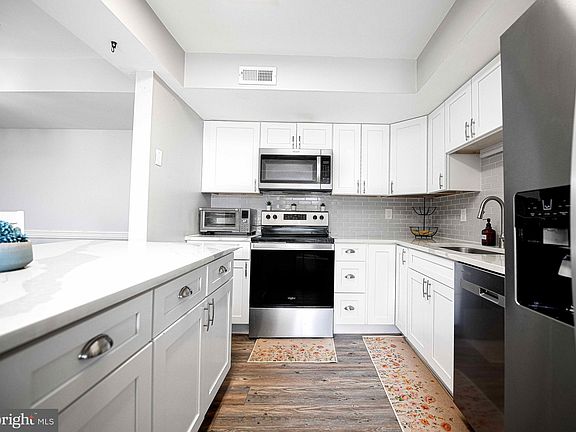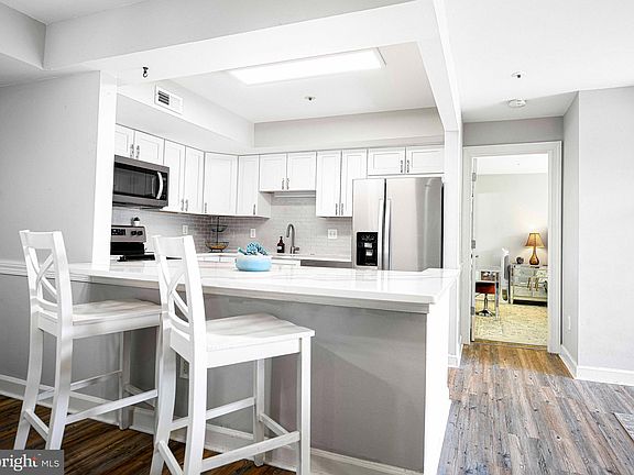 Welcome to 902 Martell Ct, a beautifully updated penthouse condo with modern finishes! Recently renovated, this home features luxury vinyl flooring throughout and a bright, open layout. The updated kitchen is a key feature, showcasing quartz countertops, grey subway tile backsplash, a peninsula offering additional seating, stainless steel appliances, and newer white shaker-style cabinets. The living room is anchored by a cozy wood-burning fireplace and is extended by a sunroom style bump-out with Palladian window. The spacious primary suite offers a large closet, ensuite with soaking tub/shower combo and double vanity. Both bathrooms have been renovated with modern white vanities and quartz counters. A private balcony off the sunroom bump-out and primary bedroom offers the ideal spot to unwind, take in stunning sunset views, or enjoy your morning coffee. Storage is abundant, with a dedicated storage room that includes the laundry area and an additional storage closet off the balcony. Nestled in a quiet, tucked-away community, this home is just minutes from downtown Bel Air’s shops, restaurants, coffee spots, and nightlife. Enjoy easy access to Route 1, Towson, and I-95. Don’t miss this fantastic opportunity to own a beautifully updated condo in an unbeatable location! Building has new roof.