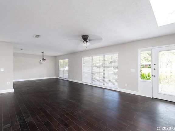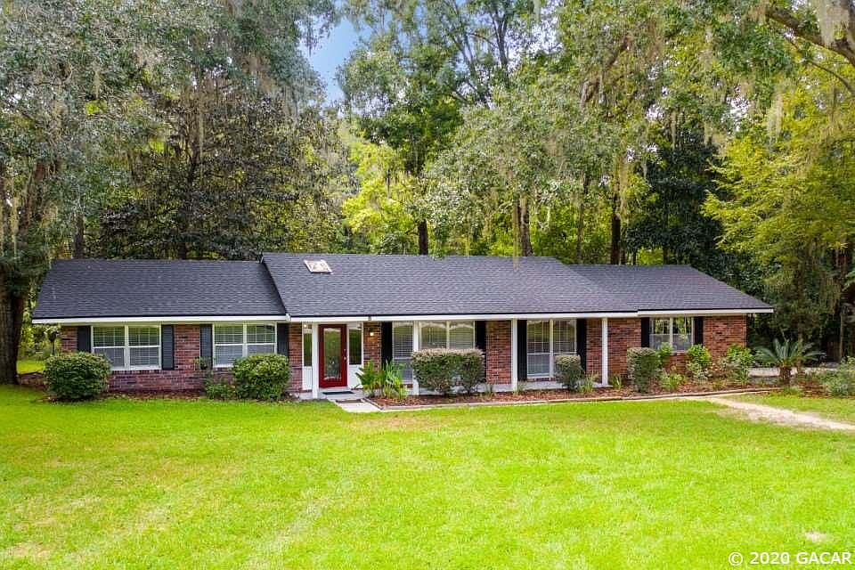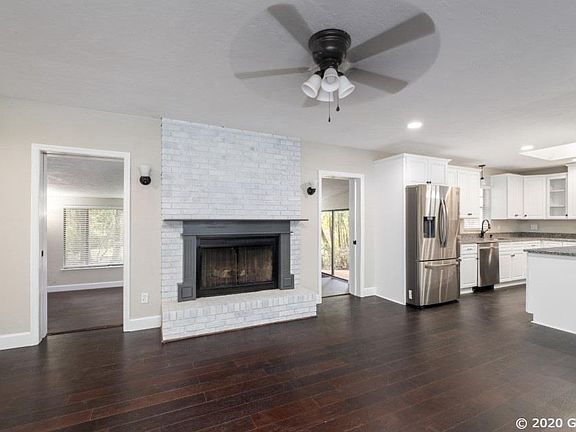 Exceptionally remodeled 4/2 in popular Oakcrest! Open floor plan. New architectural roof, hot water heater, HVAC, kitchen with new cabinets, granite counters and stainless steel appliances. Large island in kitchen. New bathrooms with new cabinets, granite counters and slate floors, whole house has engineered wood flooring. Fireplace. No carpet. House has been re-piped including waste lines. Brick over concrete block, large lot is 1.08 acres. Walk in closet in Master. Laundry room and separate office heated and cooled off of 2 car side entry garage. Super location, near everything and great schools!