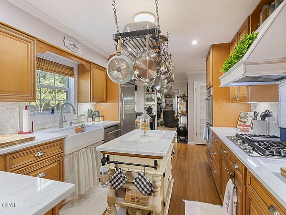 Beautifully updated 2-story home in the charming fishing town of Carrabelle, surrounded by national forest! Features vinyl wood floors, carpeted bedrooms, and an updated kitchen with stone countertops and new stainless steel appliances. Enjoy a formal dining room, screened porch, and completely redone wood-burning fireplace. Upstairs offers 3 bedrooms and 2 full baths. Exterior highlights include a 2-car garage, fully fenced backyard, 2 large insulated 12x24 storage sheds (one with mini-split AC), and a new boat/RV barn. Located in a golf cart-friendly community, just a short walk to marinas—perfect for coastal living!