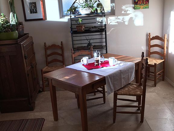 Location Bike trail at back of casita One stop light to 285/84 Walk to Restaurants, Co-Op, Plaza Five years new complete renovation All appliances provided Mountain view /nicely landscaped Front entrance patio and garden Back yard fenced and treed Off Street Parking Owner pays for water sewer trash. Owner maintains exclusive use of garage.