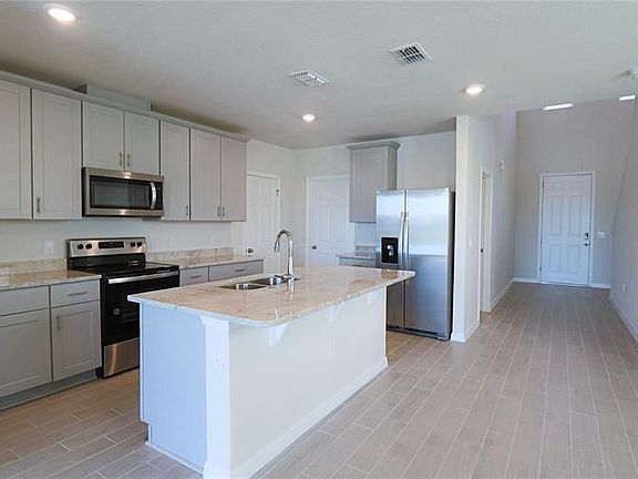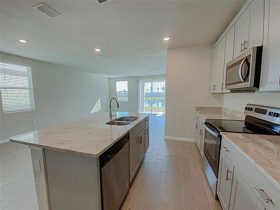 Move-in Ready Water-view, Spacious, 4 bed - 2.5 bath two story home in gated community - Cagan Crossings off route 27 and 192 in Clermont. This great room is an open family, dining, and kitchen area so you are never far from the action or entertainment. The kitchen has gorgeous granite counters, tall wall cabinets with crown molding, and large island kitchen for side bar top and sink. Plenty of counter and cabinet space with a side pantry closet for more storage. Brand new, Energy efficient, high-end, stainless steel appliances include fridge, stove, microwave, dishwasher. Ceramic wood-styled tiles throughout the first floor, for ease of use and cleaning, up to the downstairs master bedroom. Large carpeted master bedroom is split away from the other bedrooms that are upstairs providing a little more privacy. The bathroom has dual vanity with beautiful stone counter, large shower stall, separate toilet room and huge walk in closet and side linen closet. The top of the stairs opens to a large loft, 3 bedrooms and a hall bath with dual sinks on a stone vanity top. This community is just a few miles from the 429 interchange, tons of restaurants, shops, and entertainment. Renters insurance is required. Tenants are responsible for utilities and lawn maintenance. The owner requires tenants to have credit score over 680 and income 3x rent.