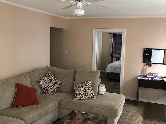 WU A/C Stacked W/D. Gas range. No refrigerator. Large rooms. Good closets. High ceilings. Dec fireplace. Carpet. Dining room hardwood. Interior stairs on side. Back stairs to balcony and kitchen from driveway. Blinds Light and airy with many windows. Quiet neighborhood. One garage space Mainly for storage. Shown by appointment. Do not disturb tenants. Unit is all upstairs. Do not disturb downstairs tenant. No smoking. No Section 8. New countertops, floor in kitchen. Water is $70/month paid with rent. Tenant pays electric and gas separately.
