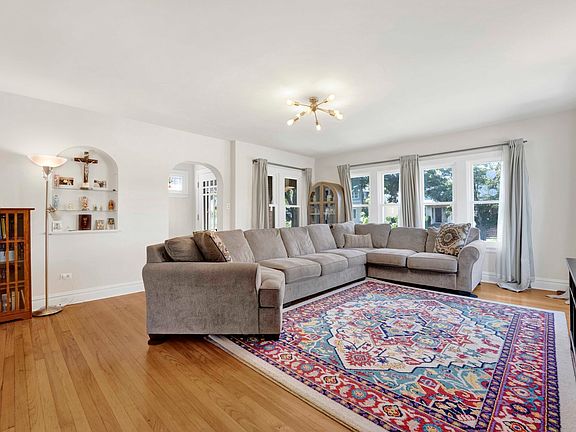 Win the neighborhood lottery with this bright and beautiful, 4 bed, 3 bath corner bungalow in Oak Park! Situated 2 blocks away from highly rated Lincoln Elementary (with the only Spanish immersion program in Oak Park), you'll also enjoy 12 parks within 1 mile or less! Stepping into the home, you feel a sense of openness from the large living room and tons of light from new Pella sound resistant windows throughout - quiet inside! The living room has triple exposure, including from the west to catch those end-of-day sunsets... that then flows into your formal dining room. The bright kitchen has a window that looks out to the open sky, and features 6 burner range with convection, brand-new butcher block counter tops and new farm sink and copper fixtures. The main floor has hardwood floors throughout, 2 sizable bedrooms and a full bath. Plus, a rear sun porch that's great for office, mudroom or additional living space. Situated on a longer lot (138 feet), this home enjoys a spacious, fully fenced backyard with a fruiting nectarine tree. Upstairs is your king-sized primary suite/retreat - with an additional full bath and sitting room/home office/nursery. The basement has newly installed luxury vinyl plank flooring (2025) and drywall throughout the family room and the 4th bedroom, with an additional bathroom, walk-in closet, laundry and tons of extra storage. Fully paid off solar panels (2023), greatly reduces your monthly bills. Commuter's dream close to the CTA Blue Line and expressway. Close to the Arts District, Rehm Pool, community center, grocery, and easy access to Downtown Oak Park, shops, dining and nightlife. Newer furnace & air (2020), roof (2016) and 2 car garage complete this all-brick home. With privacy, charm, and modern efficiency, this home offers the perfect blend of community and comfort. Great option for FHA/VA - schedule your showing today and experience it firsthand!