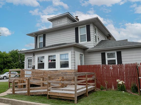 Definitely affordable at this adjusted list price! 2 story home currently being used as a 2- family home. This solid home could be easily used just like it is, or restored to a single family home. Laminate floors, coffered ceiling in the living room and a safe , fenced yard space as well as a fenced open patio add to the versatility of the property. The second floor was renovated recently. The sharp, clean, exterior lines define it. Use the handicap accessible ramp on the front or remove it. Included is a well-trimmed yard and a detached garage. As is customary, pre-approved buyers or POF required for showings.