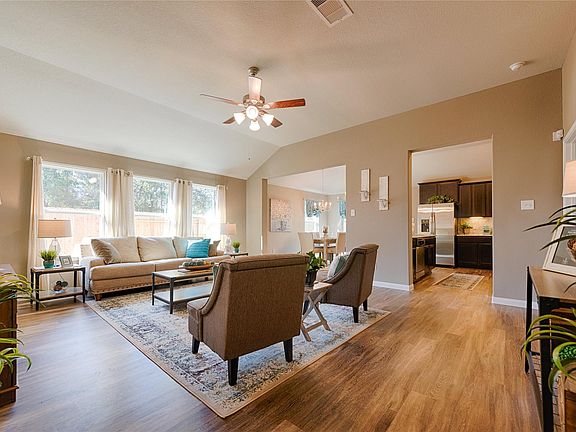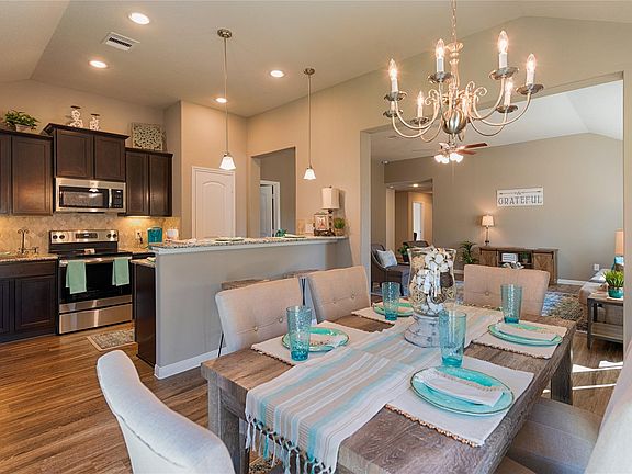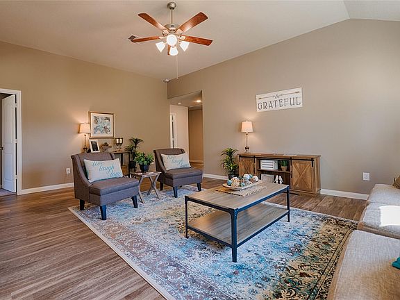 You will fall in love with this open floor plan offering 4 bedrooms, 2 baths with an oversized family room and large kitchen with granite counters, custom backsplash stainless steel appliances, serving bar with pendant lighting and breakfast room big enough for a table for 8 people. Split plan that gives privacy for the spacious primary suite and an ensuite bath that comes complete with double vanities, granite counters, w/separate tub and a shower ! Vinyl wood planks throughout the home with only carpet in the bedrooms only and tile in the ensuite bath. Plenty of room for the kiddos in this 4 bedroom home! Home includes 2" Faux Wood Blinds, USB outlet in Master & kitchen, ully installed security system, video doorbell, Wi-Fi thermostat, garage door opener and so much more! Call today to view this beautiful home!