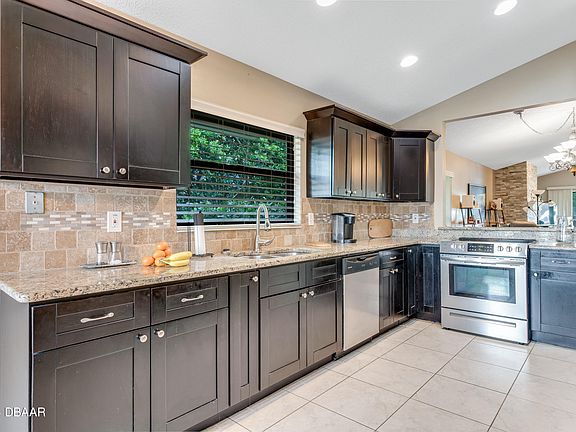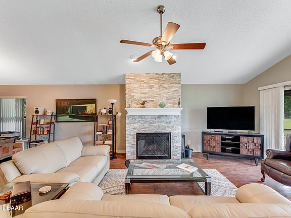 This beautiful home in the Countryside community of Port Orange, Florida, is a 3 bedroom, 2 bath open concept living room with a fireplace. The living area opens to a screened lanai overlooking the sparkling lake in the backyard. The kitchen has been electrically updated along with a cosmetic facelift of granite countertops and newer appliances. All bedrooms have new carpet and the primary bedroom closet has been customized. The two car garage houses the new A/C unit that was recently replaced.
