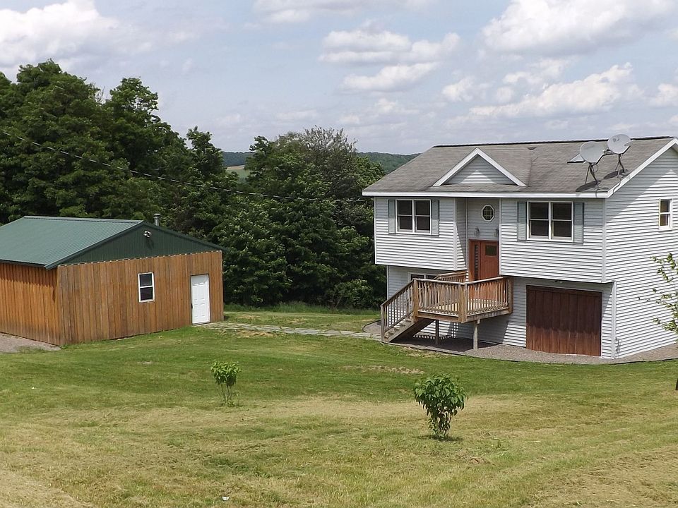 Located on a tranquil hillside, this beautiful 3 bedroom 2 bath raised ranch on 8 acres is sure to impress. Oak and locally harvested black walnut floors and trim, in floor radiant heat, brand new full bath and laundry, and a walk out basement are just a few of the interior highlights. This home can be heated using propane forced hot air or in floor radiant heat, and supplemented with a wood stove for those cozy winter nights. The 24'x32' pole barn w/floor radiant heat and contains a corn/pellet boiler (negotiable). 4+wooded acres with pond make this an ideal for horses, wildlife enjoyment.
