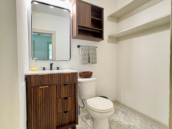 Modern toiletStylish new vanityUpdated lightingRefinished tubNew flooringNew cabinetsFenced front courtyard