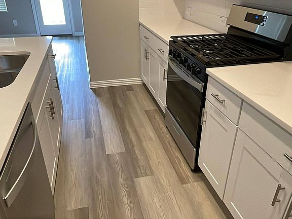 Beige carpetSmoky oak evp flooringBrand new appliancesWasher and dryerCorner lotWhite cabinets
