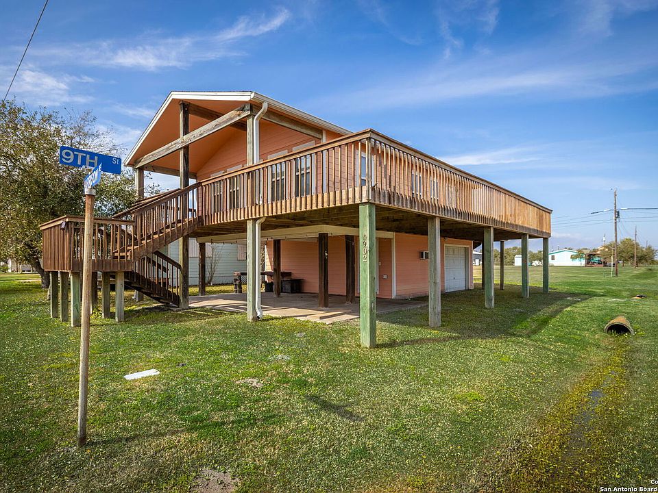 The Spoonbill, as the current owners have named her has been the hub of phenomenal POC memories for the last few years, but it's time for someone else to make new memories here. With two bedrooms and one bath upstairs and one bedroom with a full bath downstairs, the property sleeps 9. There's a one car garage (houses the laundry area) to store your beach toys or your skiff. Quick golf cart ride to Froggy's or front beach. The half lot behind the home is also included. Use it for truck and boat parking, or use the optional electric drop for an RV hookup. Water views from the kitchen window and upper deck allow everyone to enjoy POC sunsets over Boggy Bayou. No HOA!