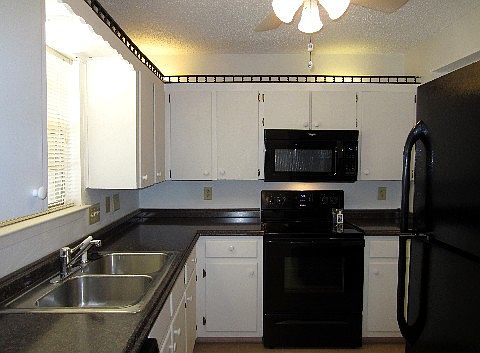 3-bedroom, 2-bathroom, full kitchen with refrigerator/freezer with ice maker, glass-top range and oven, over-the-counter microwave oven, dishwasher, disposal, ample kitchen cabinet space. 1600+ square feet living area. Bedrooms carpeted and other living areas have ceramic tile floors. Separate laundry space with hookups. Two car garage with automatic openers.