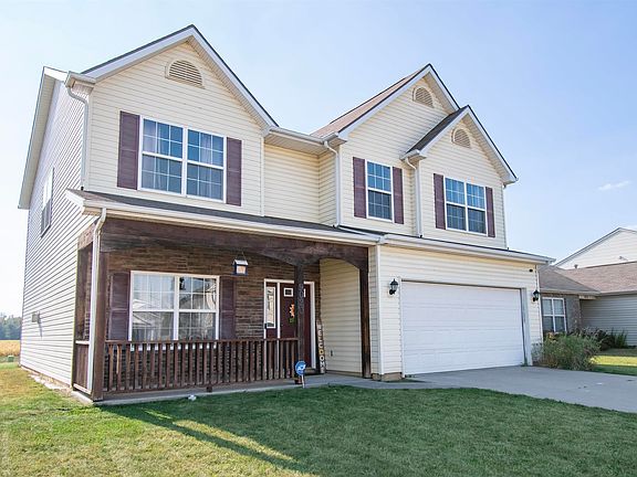 OPEN HOUSE 10/5/25 FROM 2-4PM! This turn-key 3 bedroom 2 1/2 bath home with attached 2-car garage is a must-see! The primary bedroom is HUGE and all bedrooms have WALK-IN closets! The kitchen is also very large with a breakfast bar and lots of countertop space. This SPACIOUS home is located just outside the city limits with all of the benefits of city utilities and convenient amenities nearby with LESS traffic! Ashton Pointe is a quiet subdivision with a yearly HOA that has been paid in full through March 2026, and has minimal regulations. The current owners have added many updates to this home including a whole home ADT Security System, whole home Blink Camera System, 2023 new dual zoned 2-stage climate control HVAC with whole home humidifier and thermostats, NEW dishwasher, NEW kitchen sink disposal system, NEW kitchen faucet, NEW microwave, NEW light fixtures, and 2022 washer and dryer. The sale will also include the Refrigerator and Range so it is truly move-in ready with all the appliances! They also added a lovely firepit area to the backyard to enjoy while you overlook a farmed field, instead of staring into someone else's home! The farmer has stated he has no interest in selling, so you can enjoy this view for years to come! This home's large size, serene location, and nearby city amenities away from the hustle and bustle make this home a true gem!