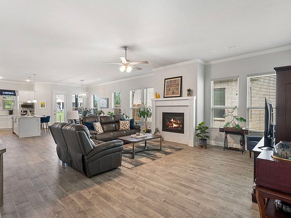 Step inside to find wood-look tile floors and elegant crown molding throughout, adding warmth and sophistication. The impressive 8-ft interior doors and abundant windows flood the home with natural light, giving it a bright, airy feel with a modern flare.