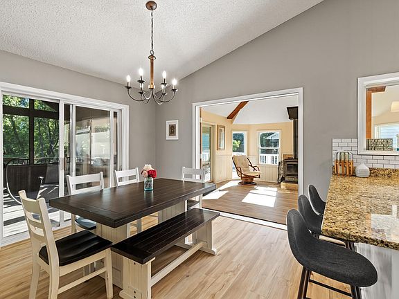 Welcome to 9020 Glacier Road. This single level home features many updates throughout. Including new paint, flooring, and kitchen cabinets. The main floor includes a primary bedroom and main floor laundry. Built for someone who enjoys outdoor space with large composite decking and a covered screened in porch. Main floor sunroom with wood burning stove. You will find lots of mature trees as well as fruit trees and a large raspberry patch around the property. Other features include a finished lower level with walk out and oversized insulated/heated garage.