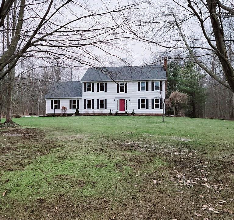 Welcome to this beautiful four-bedroom 2.5 bath colonial located on a 2-acre lot in Chardon! This well-cared-for home is situated in a subdivision close to highways yet tucked in the country. The spacious two-story foyer welcomes you as it opens into the formal living room with a wood burning fireplace; on the adjacent side of the foyer, there is a large formal dining room in the front of the house. The heart of this home features an open kitchen with a spacious eating area with an expansive granite breakfast bar, plenty of cabinets and counters, plus a large walk-in pantry and half bath. The kitchen opens to a cozy family room with built-in bookshelves, a bench seat, and a beautiful bay window. There are two full baths and four nice-sized bedrooms upstairs with newer carpet. The main suite has a spacious bedroom with a huge walk-in closet, and the master bath has granite counters, a soaking tub, and a shower. The basement is partially finished and includes a rec room with a gas fireplace, workout area, potential wine cellar, and laundry area. There is a large deck out back and a beautifully landscaped yard.