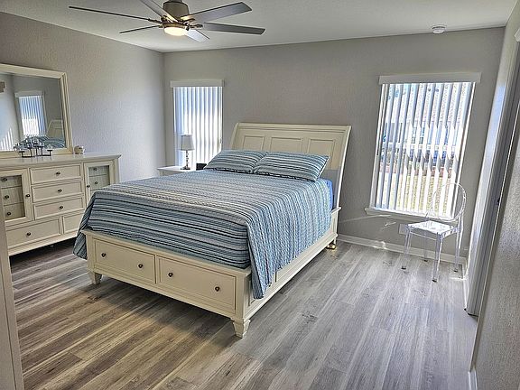 This house is 3 years young, luxury vinyl flooring through out, open plan large kitchen island, screened in porch/lanai. Master suite has a sitting area. Master bathroom has a large shower with a recently new shower wrap installed for easy cleaning no grout. Large walk-in closet. In-side laundry with utility tub. Microwave has an outside vent. Whole house water softener.