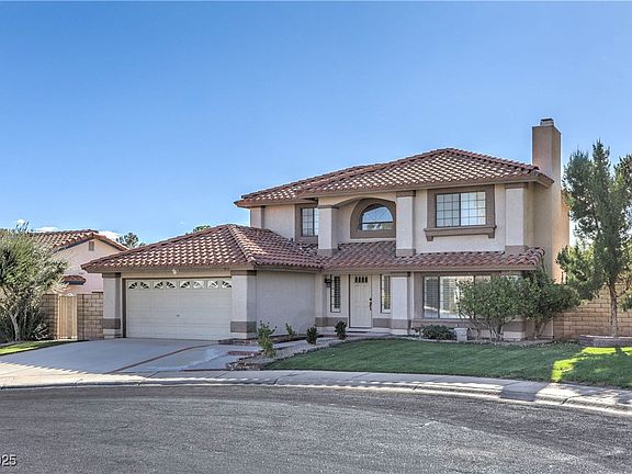Beautiful home located in the highly sought-after Lakes Community. This residence is located in a cul-de-sac and has great curb appeal. The home features an open floor plan with a formal living room featuring a cozy fireplace, a formal dining area, and plantation shutters throughout. The kitchen includes granite countertops, tile flooring, and abundant cabinet storage, along with an additional large storage area. The family room opens to an oversized backyard with a covered patio—perfect for entertaining family and friends. A wood banister and marble staircase lead to the second floor, where you’ll find all bedrooms. The primary suite features a lighted ceiling fan, a spacious walk-in closet, and a comfortable sitting/retreat area. The primary bathroom offers a jetted tub/shower combo with a vanity and sink. Two additional bedrooms share a Jack-and-Jill bathroom with a shower. Located near excellent schools, parks, Downtown Summerlin, shopping, entertainment, and more!