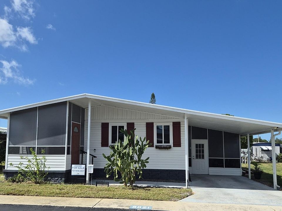 Step into this beautifully remodeled 2-bedroom, 2-bathroom showpiece located in the heart of Port Richey, FL. Nestled in a vibrant 55+ community, this partially furnished home is truly move-in ready, offering a perfect blend of modern upgrades and cozy charm. Enjoy peace of mind with a resurfaced roof, all-new plumbing and fixtures, and updated electrical switches and outlets throughout. The fully renovated kitchen is a Cook's Delight-whether you're whipping up weeknight meals or hosting guests, you'll love the modern appliances, roomy pantry, and thoughtful design touches like sliding barn doors and a deep apron sink. The kitchen features a 36"" refrigerator, dishwasher, stove with regular and convection baking, microwave, and a single-base farmer's sink that adds rustic elegance. Both bathrooms have been transformed with porcelain tiled walk-in showers, new vanities and toilets, and tiled floors. The home boasts all-new vinyl flooring, energy-efficient double-pane windows, and board and batten doors for a fresh, cohesive look. Step outside to enjoy the new vinyl siding with skirting, a redone front porch with Florida glass screening for rain protection and privacy, and new tile flooring. The updated lanai and storage area offer extra space and convenience, while the 63"" color-changing fireplace adds ambiance with or without heat. Additional Features: • New drywall ceiling with dimmable LED lighting • Mid-century vanity and medicine chest in the primary bath • Internet doorbell with camera and window alarms • Water softener system This home is a must-see for anyone seeking style, comfort, and convenience in a welcoming Florida community. Schedule your tour today and discover your next chapter in this beautifully updated retreat!