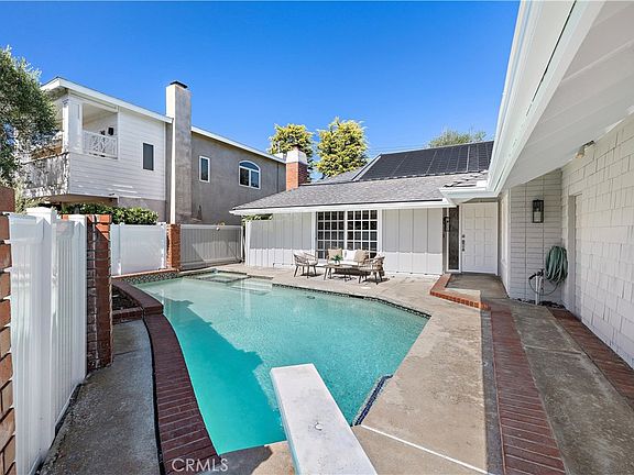 Nestled in one of the most sought-after pockets of South Huntington Beach, this charming single-level residence offers the perfect blend of comfort, style, and location. Boasting three spacious bedrooms and two well appointed bathrooms, this light and bright home invites you in with a freshly painted exterior and interior, sleek slate flooring, and an open, airy layout ideal for both entertaining and relaxing near the pool. Originally offering four bedrooms, the floor plan has been maximized for open living space but can easily be converted back to a four bedroom home if need be. Renovated over time, the property features recessed lighting, smooth-finish drywall, an upgraded electrical panel with recessed lighting, paid-off solar panels dedicated to heating the pool, composition shingle roof, upgraded windows and new vinyl fence and landscaping. Designed with outdoor living in mind, step outside to your own personal oasis in the front with your pool and spa or enjoy your low maintenance rear yard with mature fruit trees and foliage offering an abundance of privacy. Whether you're hosting a weekend barbecue or enjoying a quiet evening under the stars, this home delivers the perfect backdrop. Located within walking distance to Huntington State Beach and award winning schools and just a short bike ride to Newport Beach, this South of Hamilton home checks the boxes for a coastal lifestyle at an incredible value.