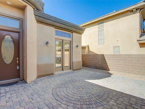 Enjoy relaxing in the serene courtyard with your morning coffee, or unwind by the sparkling pool in the evening while taking in breathtaking sunsets. Go for a morning or evening walk, enjoy the nearby parks with tennis, volleyball and more! This home is designed for comfort and convenience, with easy access to shopping, dining, the freeway and Creech Air Force Base. Plus, the elementary school is just a short walk away, making it an ideal location. Freshly painted, new carpet throughout, new tub in 2nd bathroom, new kitchen sink and freshly trimmed palm trees.