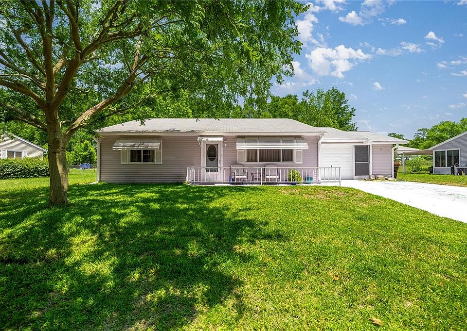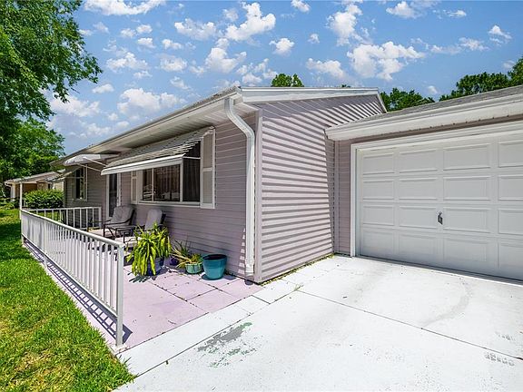 Price for quick sale! If you enjoy privacy you will love the private back yard with no rear neighbors! Rare lot with no neighbors front or back! Expanded Hickory model home with 2 Bd 2 BA in the popular Oak Run 55 Plus community. Enjoy a low HOA fee that covers basic cable trash pickup, 24-hour security, and access to all community amenities. Oak Run offers an unbeatable lifestyle with three clubhouses, 5 pools (including one indoor), five hot tubs, two fitness centers, restaurant, a golf course, and over 150 clubs to join. Stay active with shuffleboard, bocce ball, horseshoes, four tennis courts, two pickleball courts, and a billiards room. Additional amenities include a ceramics studio, library, and a dedicated dog park. New roof will be installed before closing. Large master suite with sitting area, walk-in closet, along with a large living room for entertaining. Kitchen with lots of cabinets space, and a pass-off from kitchen into dining area. The large lanai backs up to nature allowing a nice peaceful Florida evening. New $19,000 AC and ductwork in 2024. Garage features large workshop/storage area and laundry room. New floors installed 2023. Backyard newly fenced and Patio expanded in 2023 in addition to: new kitchen sink, stove, and dryer. Come see this charming and affordable beauty before it's gone!