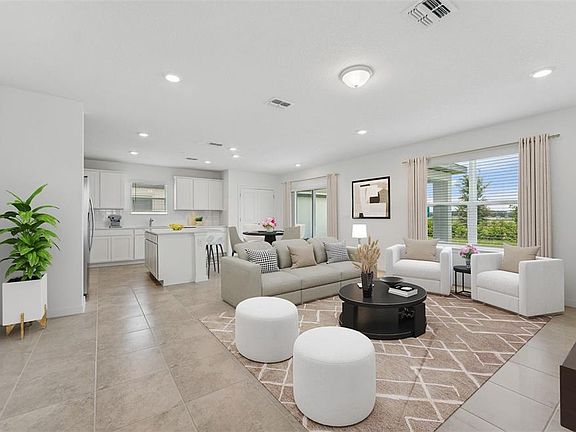One or more photo(s) has been virtually staged. Under Construction. Pulte Homes is Selling in Twisted Oaks! Enjoy all the benefits of a new construction home in the charming city of Wildwood, Florida, just 2 miles west of The Villages! This new home community will offer a resort-style pool with an open cabana, playground, green space, and dog park. Featuring the popular Mill Run floor plan, this home has the layout you’ve been looking for. The designer kitchen showcases an island, white cabinets, quartz countertops with a 3"x6" white tiled backsplash, a large pantry, Whirlpool stainless steel appliances including a dishwasher, microwave, refrigerator and range, and a large single-bowl sink. The bathrooms have matching white cabinets and quartz countertops and dual sinks and walk in shower in the Owner's bath. There is 18”x18” floor tile in the main living areas, baths, and laundry room and stain-resistant carpet in the bedrooms and loft. This home makes great use of space with a 1st-floor bedroom and full bath, versatile loft, convenient 2nd-floor laundry room with Whirlpool washer and dryer, covered lanai, 2-car garage, and extra storage under the stairs. Additional upgrades include LED downlights in the gathering room, pendant pre-wiring in the kitchen, upgraded door hardware, whole house blinds, iron balusters with oak handrail at stairs, whole house cabinet hardware and a Smart Home technology package with a video doorbell. Enjoy peace of mind with Pulte’s transferable, 10-year Limited Structural Warranty that covers materials and workmanship in the 1st year, workability of plumbing, electrical, HVAC, and other mechanical systems through the 2nd year, various types of water infiltration and internal leaks through the 5th year, and the structural integrity of the home through the 10th year. Plus, we’re currently offering limited-time incentives and below-market rates!