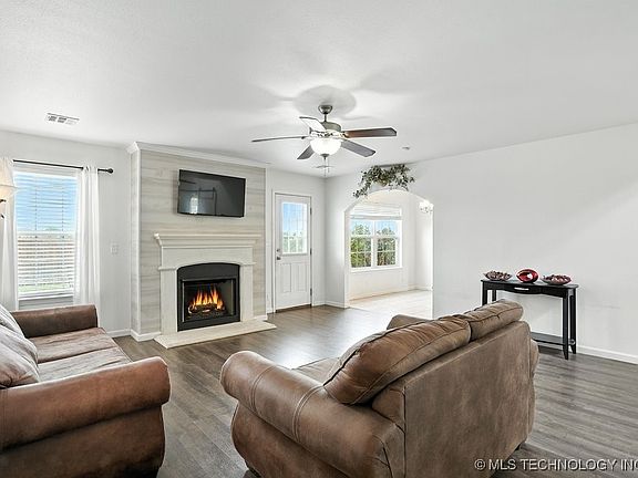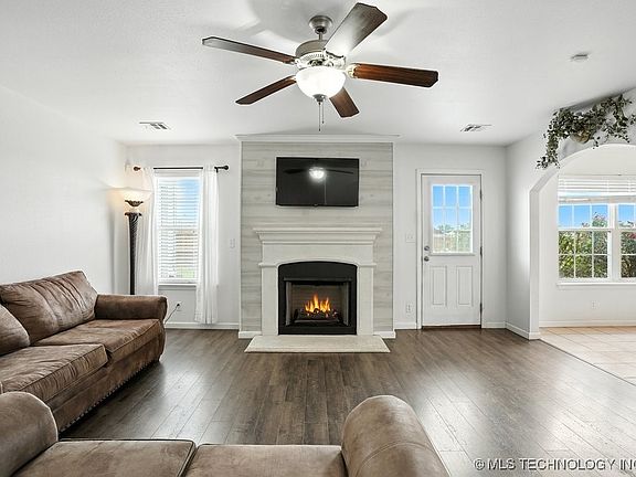 The previous sale fell through no fault of the property condition or sellers. This terrific house is in The Crossing at 91st in Broken Arrow. It features a low maintenance full brick and vinyl siding exterior. The Primary bedroom, flex room (home office or formal dining room), den with fireplace, kitchen, laundry, and half bathroom are all on the first level. Two bedrooms, full bathroom, and a large bonus room are located upstairs. Some LVP flooring, granite counter tops, stainless steel appliances, newer roof (2018).Great community park. Its located close to popular shopping and old Hwy 51 and not far from Highland