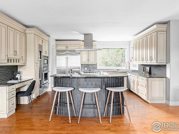 Set on 1.35 acres in Boulder's White Hawk Ranch, 9022 Jason Court offers resort-style amenities and expansive living. This 8,512-square-foot, six-bedroom, seven-bathroom residence pairs privacy with connection, featuring sprawling lawns, a pool and sport court, and interiors anchored by a main-level primary suite with multiple spaces for gathering, entertaining, and retreat. A marble foyer sets the tone with timeless finishes and generous scale. To the left, a dedicated office enjoys floor-to-ceiling windows, while ahead, the formal dining room impresses with tall ceilings and French doors to the backyard. A serving area with a walk-in pantry connects to the chef's kitchen, where two large islands-one with bar seating, the other with a six-burner range-create the ultimate culinary workspace. Custom cabinetry, a sunny breakfast nook, and sinks overlooking the grounds complete the kitchen, which flows into the living room with stone fireplace, built-ins, and a wall of windows. Hardwood floors extend throughout the main level, including into the private living quarters. The primary suite features a fireplace, sitting area, spa-like bath with dual vanities, soaking tub, walk-in shower, and an oversized closet. Two additional en suite bedrooms, a powder room, and a mudroom with custom storage and laundry facilities complete this level. The lower level is designed for recreation, with a vast rec room featuring fireplace and wet bar, exercise room, powder room, two bonus rooms, and a private guest suite. Two more bedrooms share a full bath. Outdoors, a deck overlooks the fenced yard with pool, hot tub, outdoor kitchen, sport court, gardens, and terraces. A circular drive, motor court, and three-car garage add convenience and curb appeal. Located on a quiet cul-de-sac, this estate combines neighborhood charm with proximity to Boulder and Lafayette's shopping, dining, schools, and trails-an exceptional opportunity to enjoy Colorado living at its most refined.
