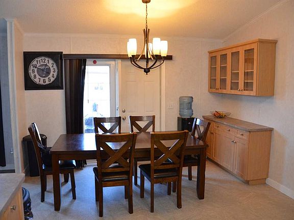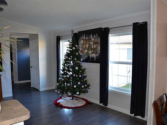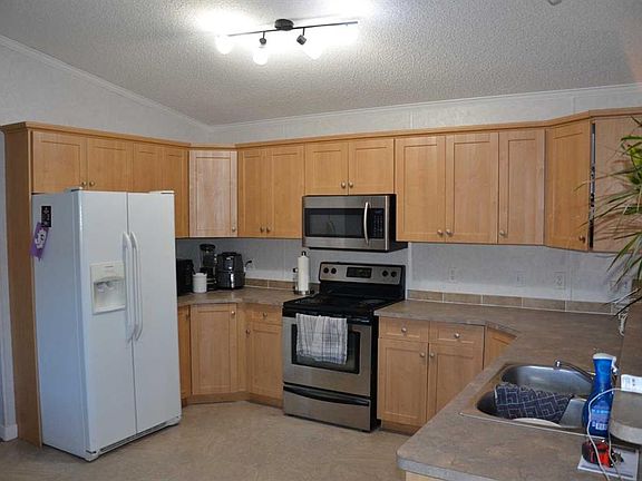 Located on its own large, pie shaped lot with no neighbors behind. This well kept 20 foot wide mobile home had 4 bedrooms and 2 bathrooms. Wide open floor plan with vaulted ceilings. Master bedroom has 4 piece ensuite and his and hers closets. New flooring in bedrooms, new toilets, new hot water tank, new stove and dishwasher. Yard is fully fenced with deck, small shed, and firepit area.