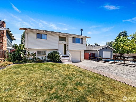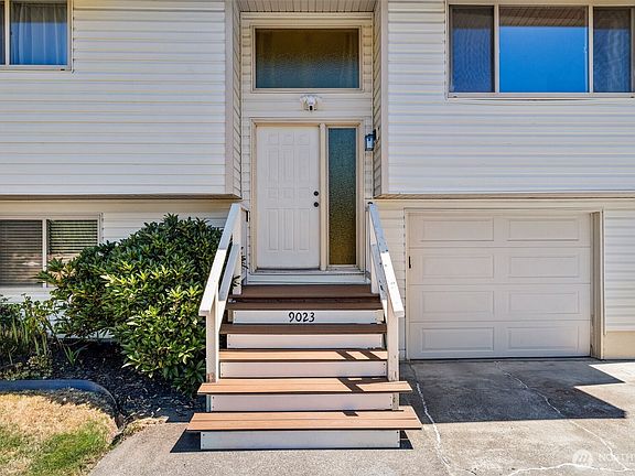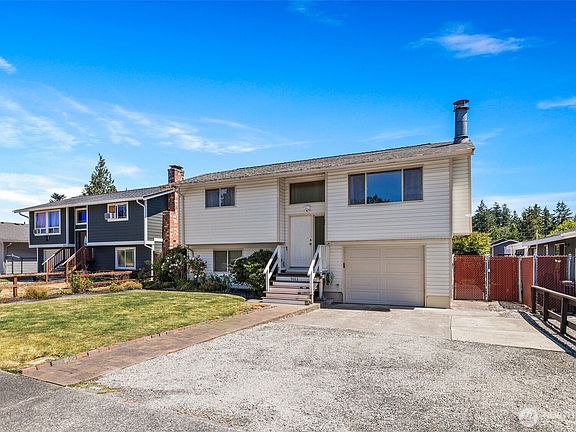 Well cared for 4 bed 2 bath Tacoma home with large fully fenced lot. Newer front trex deck. Durable vinyl siding. Dual pane vinyl windows. Open living/dining room w/fireplace insert & large windows for lots of natural light. Slider door to rear deck. Kitchen features vinyl flooring & updated cabinets/counters & backsplash. 2 spacious bedrooms & full bath up. Two more bedrooms down, full bath & oversized 1 car garage w/laundry area. Furnace w/airscruber recently serviced. Beautifully built rear deck for outdoor entertaining & storage space beneath. Concrete patio in the large fully fenced yard, along with lots of beds for garden or flowers. Large storage shed. Oversized driveway for extra parking. This home is ready for you! Come see today!