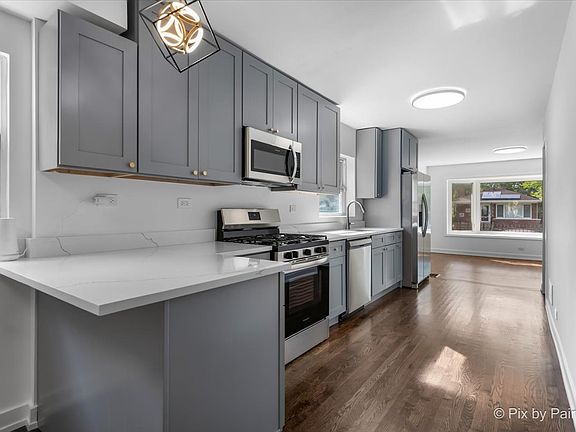This newly renovated home features a brand new kitchen with new grey shaker cabinets, quartz counters, and SS appliances, new light fixtures, 2 renovated bathrooms, newly refinished HW floors on the main level, fresh paint, and more. There are 3 bedrooms on the main level and an additional 2 bedrooms in the finished basement. 2 secure parking spaces in the rear with a lockable gate. This property is partially owned by a licensed real estate broker in Illinois.
