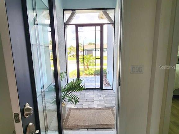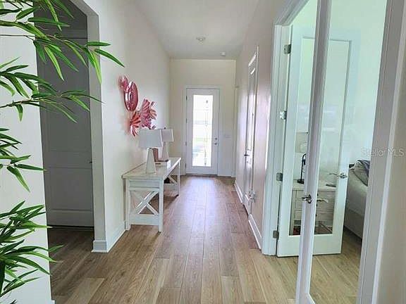 A nearly new 1 year old pool home. 3 bedroom, 2.5 bath home in the prestigious Del Webb Bayview 55+ community. This is the Prestige model which includes nearly 2100 sf. The open concept plan is light and bright and features a chefs kitchen with gas cook top, walk in pantry and huge island. Quartz counters, Whirlpool stainless appliances, built in oven and microwave and contemporary tile backspalsh complete the look. The primary suite has upgraded walk-in shower, tile to ceiling and built in bench in dry area. Double sinks, water closet and not one, but 2 separate huge walk in master closets. Bedroom #2 looks out to the front, has a large walk in closet and private full en-suite bath. Bedroom #3 can also be used as a flex room, office or den with the 8 ft glass doors and large step in closet. If you hate carpet like I do, you will appreciate the luxury vinyl plank throughout living areas and tiled bathrooms. Some additional upgrades include epoxy garage floors, faux wood blinds, custom ceiling fans, unique contemporary kitchen pendant lighting and cafe area was professionally closed in with matching 8 foot glass doors to form a private office space. The things I liked most about the house were the 12 foot ceilings throughout and 8 foot doors throughout which make the house feel luxurious and high end. Hurricane impact windows which means no shutters to put up during hurricane season! I also loved backing up to a preserve with pond views on both sides of the back patio. I get to see bald eagles catching lunch every day and a momma soft shell turtle laying her eggs. We truly live among the wildlife here. The back yard is a paradise in itself with the custom designed salt water pool, spa and screened in with no-seeums-grade screening to keep even the tiniest bugs out. Front entry also screened in with same no-seeums-grade screening allowing you to keep the AC off during cooler weather and feeling the cross breezes. Del Webb Bayview has planned activities 7 days a week, restaurant, indoor and outdoor bars on site, enormous state of the art gym with aerobics room, ball room, art room, community kitchen that holds cooking shows with guest chefs, community garden, bocce ball, pickleball, shuffle board, water volleyball, tennis, walking trails, corn hole, billiards. You will never be bored unless you want to be.