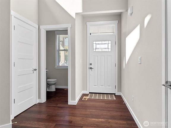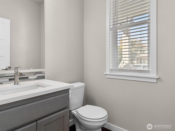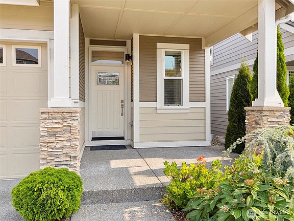 Welcome home to the Hazel Plan, a thoughtfully designed 5 bedroom, 3.5 bath home with a main-floor junior suite and open concept layout situated on a private lot. The great room features a cozy gas fireplace, dining nook, and spacious kitchen with oversized island—perfect for entertaining. Designer finishes include seadrift-stained cabinetry, quartz counters, full stainless steel appliances package included, and hardwood floors. Retreat to the primary suite with spa-like 5-piece bath. Fully fenced and landscaped yard makes this home move-in ready. Includes heat pump, covered patio, warm colors, upgraded lighting, mature landscaping all in the Bradbury neighborhood set in the Tumwater School District with quick access to I-5 and shopping.