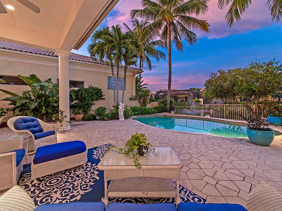 Welcome to the prestigious Terrabella community, located within Pelican Marsh. Custom designed by the owners, this expanded Cordina Model has over 700 square feet added on. This beautiful Mediterranean-inspired home features three bedrooms plus den, vast great room and formal dining room, and spacious living room. Gourmet Kitchen with marble and granite countertops and exquisite finishes. Rare three car garage easily expandable to four. Breathtaking entrance with barrel, volume ceilings with views straight to the lanai with glimmering pool and double fountain views. The elegant master suite is complete with dual walk-in closets, lanai entry, and gorgeous master bath. Private library with built-in bookshelf, full-service step-down bar with ice maker, sink and refrigerator, Anderson impact grade windows, and so much more! Imagine entertaining guests in spacious rooms with full-service bar and pristine views. Pelican Marsh is neighboring many unique art galleries, boutiques, bistros, the Mercato, and of course, the white sandy beaches. Your street is lined with beautiful trees, streetlights, and brick pavers completing the Mediterranean feel. You won't regret viewing this!