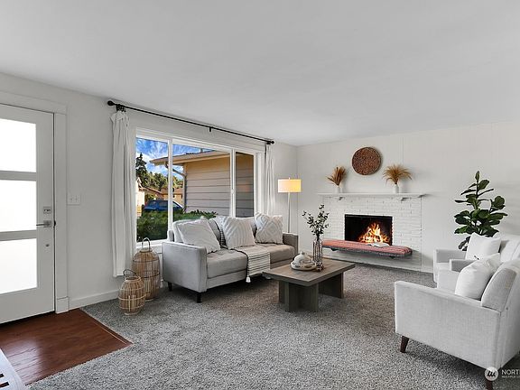 Welcome to this charming 3-bedroom rambler in Edmonds, conveniently located near Yost Park. The spacious living room features a cozy wood-burning fireplace & large windows for plenty of natural light. Updated w/ stylish light fixtures throughout. The open-concept kitchen & dining area boast a white subway tile backsplash, sleek stainless steel appliances, dark granite countertops, & contrasting LVP flooring. A built-in breakfast bar adds extra convenience. A sliding door leads to a patio & fully fenced backyard, situated on a generous 11,700+ square foot level lot w/ ample space for gardening & play. Attached 1-car garage. Live just moments away from Edmonds Bowl, Five Corners, & local schools.