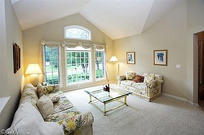 For details and more pictures, call listing Agent: Linda Shierlaw at (269) 488-0555. Custom designed & built contemporary ranch style home in the Cotters Ridge neighborhood. Close to Gull Lake and the Country Club. Single level living at its finest. 2-car att. Gar. leads you into a mud room, 1/2 bath, and laundry room. Step directly into the kit. w/ center island w/ seating. New floor & c'top surfaces. Adjoining casual living rm. w/ 2 way gas log fireplace the faces the formal living rm. too. The multi-season sun room faces the rear yard, a patio, beautiful gardens & wooded wildlife & bird vistas. There is a formal dining rm and large entry vestibule. Vaulted and angular ceilings make these spaces large and light filled. Master bdrm has double closets and bath w/ double vanities & a shower w/ seat. 2 Family bedrms, each with window seats, share a hall bath with double vanities. Basement has 1 egress window and could be finished to suit your family's needs.