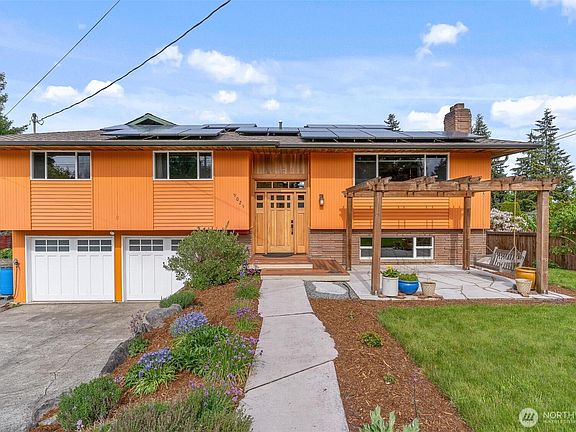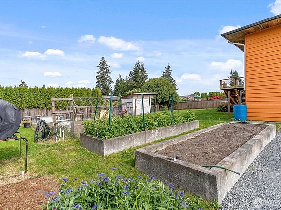 QUARTER ACRE, GARDENER'S DREAM This beautifully maintained property features a gardening shed, & raised beds, ready for your favorite crops or blooms. Sustainability features include solar panels, on-demand water heater, EV charger & upgraded septic system. The updated kitchen has custom cabinetry and an open concept that flows seamlessly into the living & dining areas, perfect for entertaining. The lower level includes two stylishly updated rooms, ideal for home office/gym/guests. It's also plumbed for a kitchenette, offering excellent potential for multi-generational living or rental income. Take in the stunning views of Mt. Pilchuck, Three Fingers, and Whitehorse Mountain. All this, just minutes from I-5, Boeing, Costco